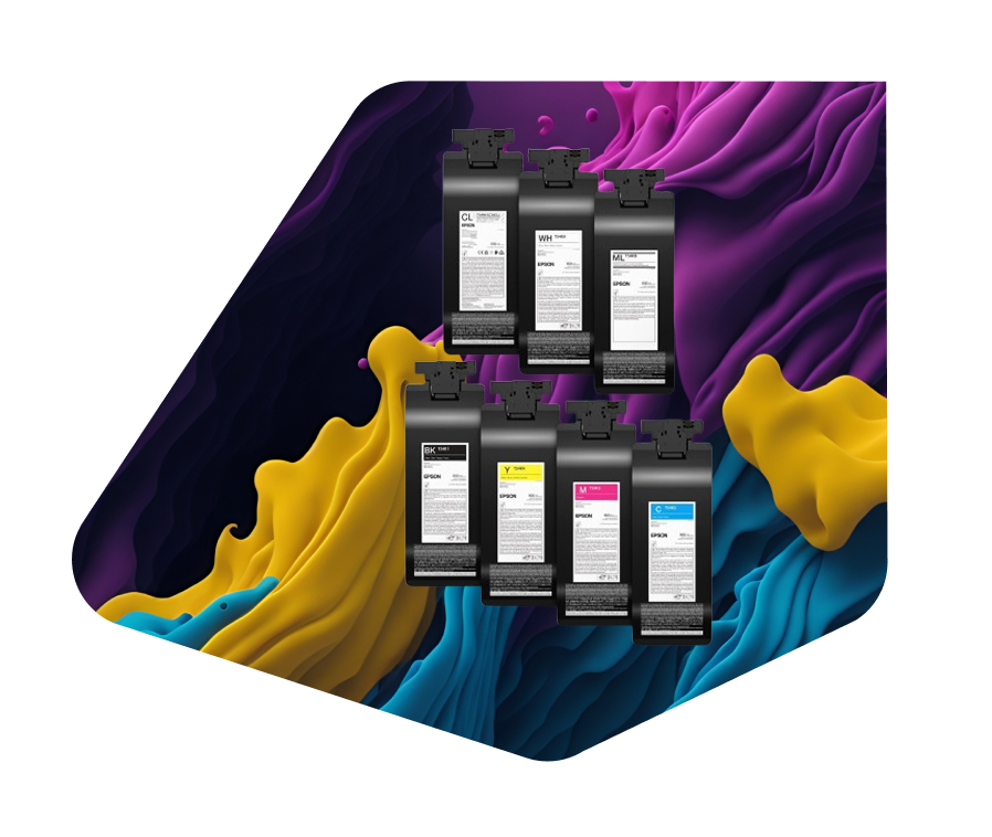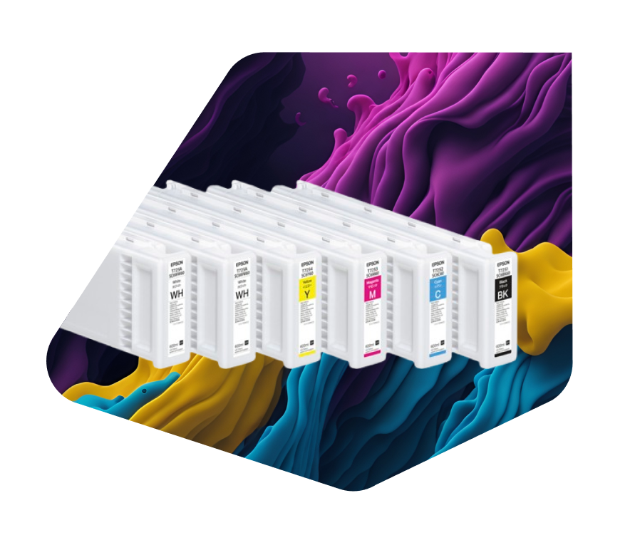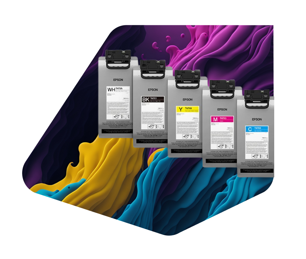 Disponíveis nas cores Black, Cyan, Magenta, Yellow e White, os cartuchos de alto volume foram criados para atender estúdios, fábricas de personalização, marcas de moda e qualquer empresa que trabalha com produção contínua em DTG.