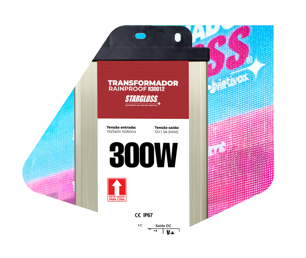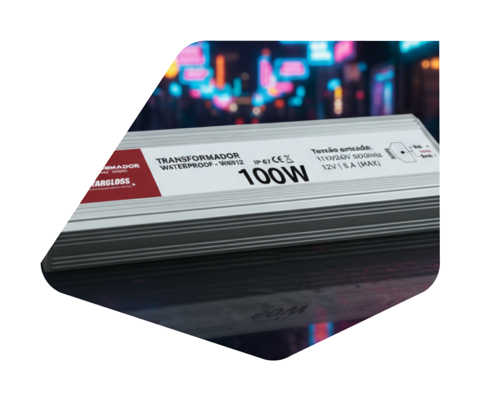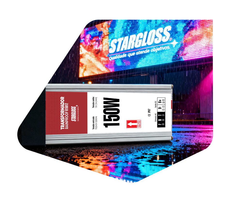 O Transformador Stargloss é um conversor de energia para módulos de LED, que fornece 12V estáveis com segurança e eficiência. Compacto e resistente, garante desempenho constante em instalações internas e externas.